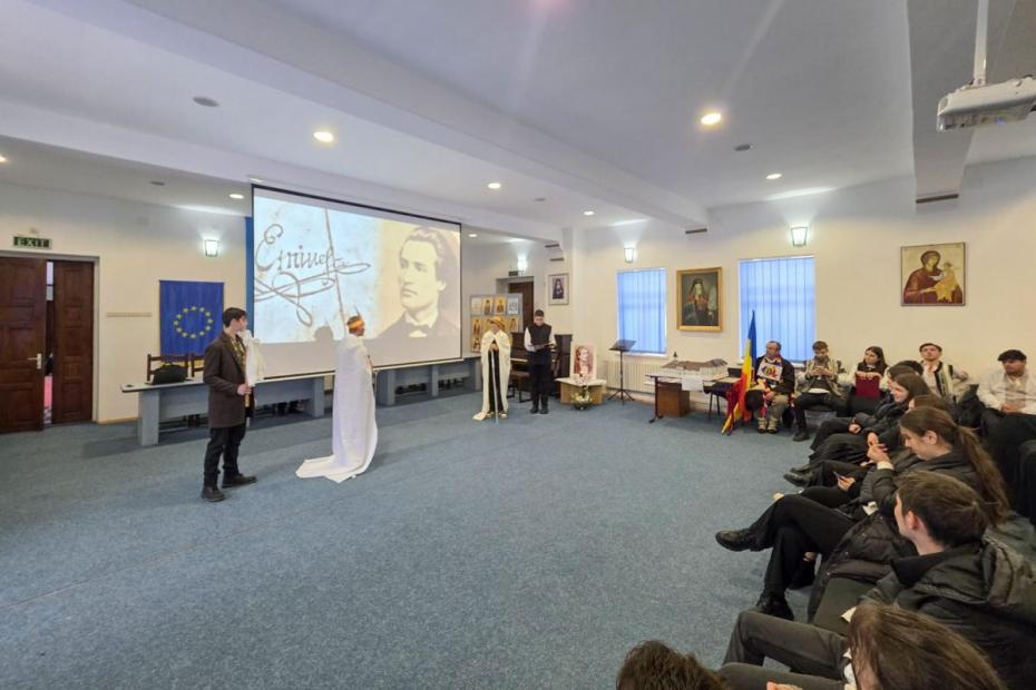 Manifestările au debutat sub auspiciile unei profunde înțelegeri a mesajului poetic. Elevii claselor a X-a (Teologie Ortodoxă) și a XII-a (Patrimoniu Cultural) au susținut un recital care a depășit simpla declamație, devenind o mărturisire de credință în valorile estetice naționale. Atmosfera a fost înnobilată de prezența corului „Victor Ojog”, coordonat de pr. prof. Marius Brumă. Interpretările corale pe versuri eminesciene au creat un cadru solemn, demonstrând că poezia lui Eminescu posedă o muzicalitate intrinsecă ce rezonează firesc în spațiul ecleziastic.